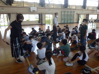 5年生は、社会福祉協議会の講師さんをお呼びして、高齢者疑似体験を行いました。最初に児童が知っているお年寄りの様子を発表しました。「ボランティア活動している」「趣味を楽しんでいる」「腰が痛いって言っている」など、身近にいらっしゃるお年寄りの様子を発表しました。