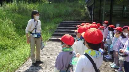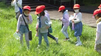 1年生は、自然観察の森に出かけました。現地では職員の方から、自然観察の森で暮らす昆虫についての説明を受け、昆虫採集にでかけました。採った昆虫は、最後に森に返して、帰ってきました。