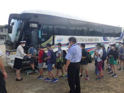 気持ちの良い朝となりました。6年生は、6:50に集合し、出発式を行いました。校長先生からは「現地の方、他の観光客にも気を配ってみんなが楽しい修学旅行にしましょう」とのお話がありました。手の消毒をしてバスに乗り込み、7:15に出発しました。朝のお忙しい中、児童を送ってくださった保護者の皆様、ありがとうございました。