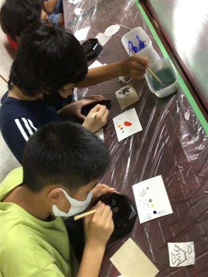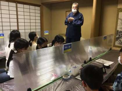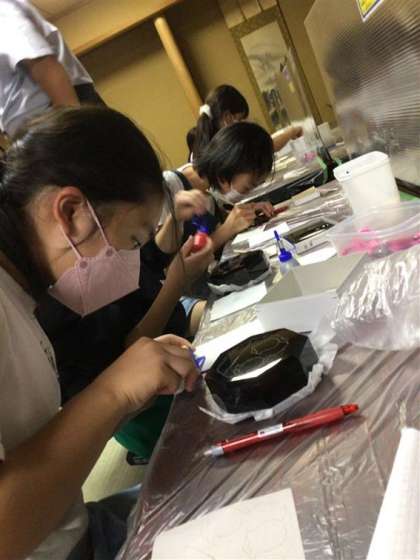 一日目の夕食後は絵付け体験をしました。