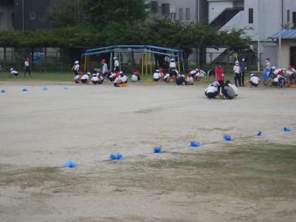 10/22(土)の伊保っ子体育フェスタに向けて、福祉・美化委員がグランド整備を計画し、今日は2・4・6年生が15分間取り組みました。児童はグランド全体に広がり、グランドに生えた雑草を取ったり、石を拾ったりしました。