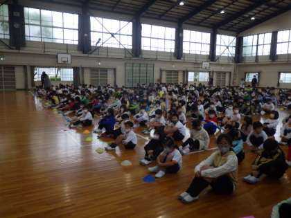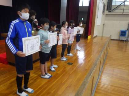 10/7(金)5時間目に、全校で学期区切り式を行いました。4月に始まった令和4年度前期も、終わりです。2、4、6年生の代表者が、「前期がんばったことと後期がんばること」を発表しました。3人とも、学年にあった発表で、前期のがんばりがよく伝わってきました。校長先生のお話の後、作文や詩で優秀な成績を収めた児童に、表彰伝達がありました。賞状を受け取る児童の表情は、堂々としてしばらしいものでした。最後に、教師が歌った校歌のCDを聴きながら、児童は心の中で校歌を口ずさみました。
