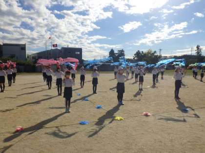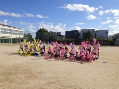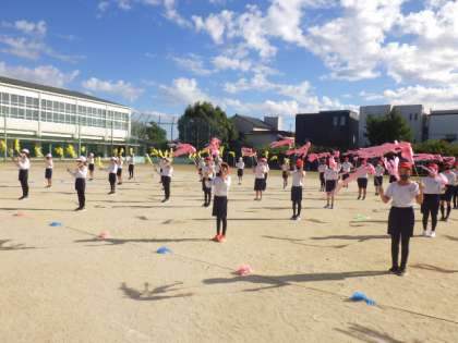 10/22(土)の伊保っ子体育フェスタに向けて、練習が続いています。5・6年生は、ダンス、体操、トーチワークを組み合わせて披露します。トーチ棒にカラフルなタフロープがついて、美しいトーチワークとなってきました。