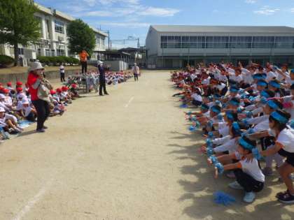 明日の伊保っ子体育フェスタに向けて、各学年最後の練習をしました。1・2年生は、中学年、高学年の最後の練習を見て、きびきびとした動き、大きな声などを学びました。また、開会式の選手宣誓は、動きと声を合わせることを目標に、最後の練習を行いました。