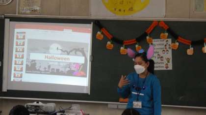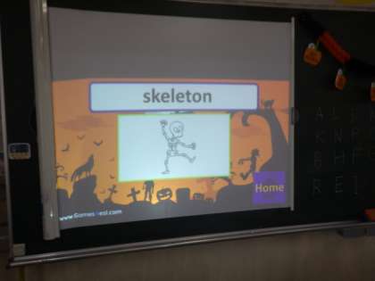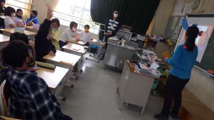 伊保小学校には、基本的に毎週1回、ALT(ネイティブの英語の先生)が来て、伊保小教師とともに英語の授業を行っています。今日は、来週に迫ったハロウィーンについての授業がありました。3年生は、ハロウィーンについてのクイズ問題に挑戦し、「ジャック・オー・ランタン」「スパイダー」「ゴースト」「スケルトン」など、ハロウィーンに関係する英語を答えていました。