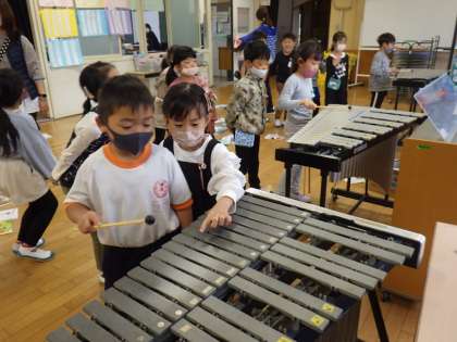 1年生は、鉄琴を使って、きらきらぼしの演奏練習をしました。「次はここをたたくよ」などと友達と教え合いながら、楽しく演奏ができました。