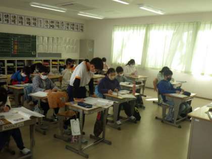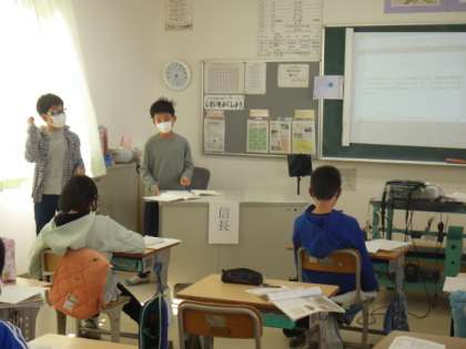 6年生の社会科では、戦国時代について学習をしています。児童は、「天下統一に向けての働きがより大きかったのは信長か秀吉か」というテーマで信長と秀吉の戦いの様子や政治の様子について調べ、ディベートをしました。「信長が整えたことを、秀吉は引き継いだ。秀吉は漁夫の利だよ」「信長はパワー系、秀吉は知能系タイプが違うから…」など、活発に意見を述べ合っていました。