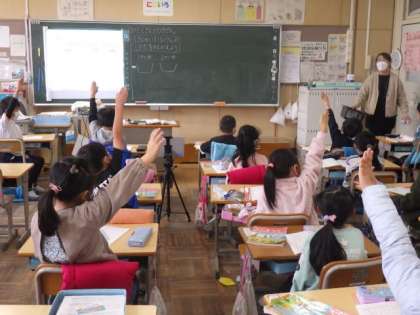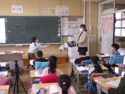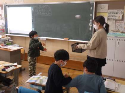 1年生の算数では、「0のたしざんとひきざん」を学習しています。12/8(木)の授業では、次のような文章題を考えました。「玉入れをしました。1回目と2回目に入った数をたすと、何個になるでしょう」
