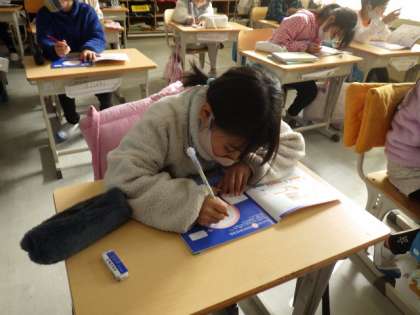 3年生の保健では、毎日の健康的な生活について考えました。最初に児童は、自分の夢について考え、発表しました。その後、夢を実現させるためには、健康的な生活が必要だということを学び、日ごろの生活を振り返りました。「もっと早く寝なくちゃ」「何でもよく食べないとね」など、意見が出ていました。