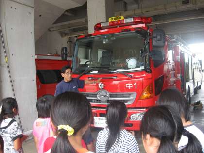 7月5日に,社会科と理科の学習のために,4年生全員で豊田市内の公共施設の見学に行ってきました。消防署では様々な防災対策の展示を見たり,署員の方の説明を聞いたりしました。渡刈クリーンセンター(清掃工場)では,ゴミの回収から焼却のようすを見学しました。そして,科学体験館では,サイエンスショーを見て,科学体験館の展示物でいろいろな体験をしました。この見学で学んだことを,これからの教室での学習に生かしていきたいと思います。