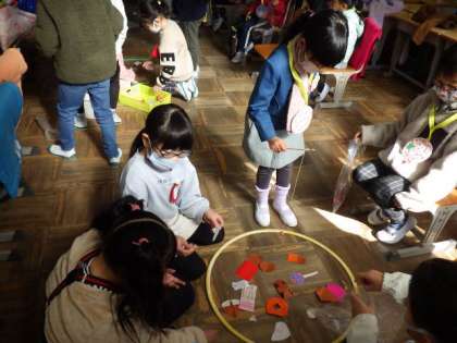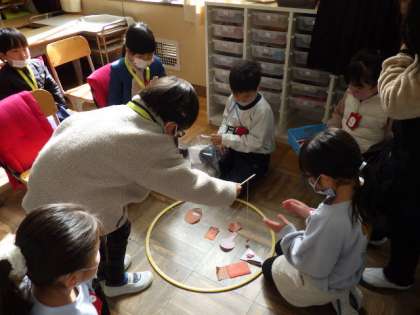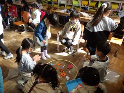 1/31に、令和5年度入学の入学説明会を行い、保護者とともに入学予定の園児のみなさんが、伊保小学校に来てくれました。説明会中は、1年生が園児さんを1年生教室に招き、1年生が作った釣りゲームを楽しみました。