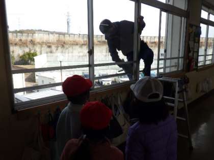 学校は、たくさんの方に支えられています。2/1〜2/2は、校舎の窓ガラスを清掃してくださる業者が入り、手際よく磨いてくださいました。通りかかった児童は、「すごい!」「ありがとうございます!」と、お礼を言っていました。