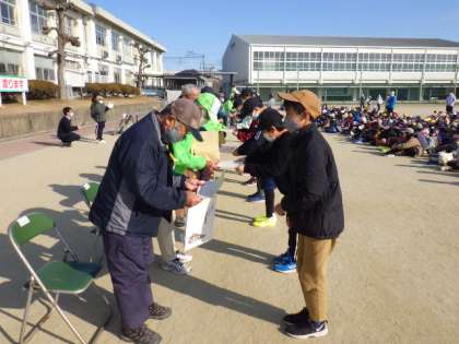 伊保小学校の地域では、約70名がスクールガードとして登録し、毎日児童の登下校を見守ってくださっています。2/9(木)の一斉下校時に、「スクールガードさんに感謝する会」を行いました。児童は1月初旬から、スクールガードさんの顔を思い浮かべながら感謝状を作成し、準備を進めてきました。