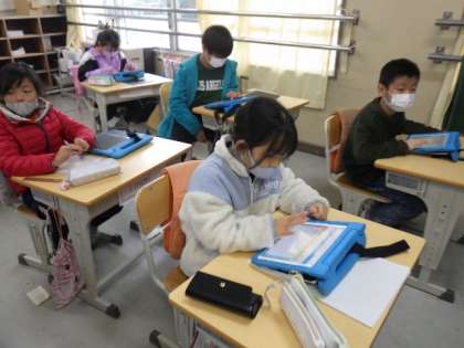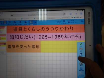 3年生の社会科では、「むかしのくらし」について学習しています。先日は、豊田市郷土資料館の方が、むかしの道具を持ってきてくださいました。2/10の授業では、児童が学習用タブレットを使って、生活道具の移り変わりについてまとめました。