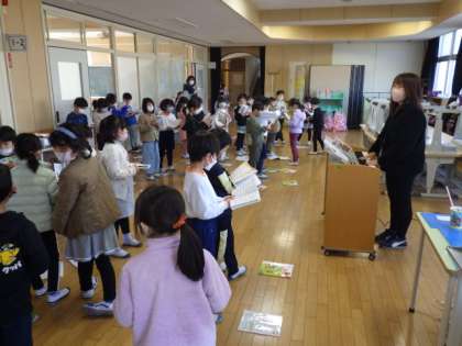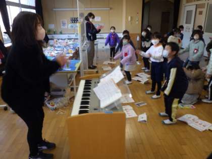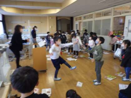 1年生の音楽では、「とんくるりん ぱんくるりん」を学習しています。2/16の学習授業では、ももや手たたきをしたり、くるりと回ったりして、歌いながら踊って楽しみました。