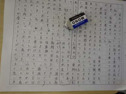 児童は自分が使う資料を選択し、自分の意見をまとめていました。「『品質が悪くなったから』や『飽きたから』など、自分勝手な理由が多い。こうした問題点を知り、意識することが大切だ」と、意見を書いていた児童がいました。