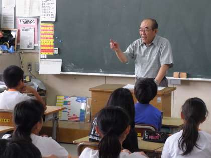 6年生の総合的な学習では,地域の歴史や伝統,文化などを調べています。7月17日には,地域の方をお招きして,戦時中の伊保小学校のようすや小学生の生活のようすを語っていただきました。6年生の児童は熱心に聞き入り,質問の時間には多くの質問が出ました。今回のお話をもとに,6年生は学習をさらに深めてきます。
