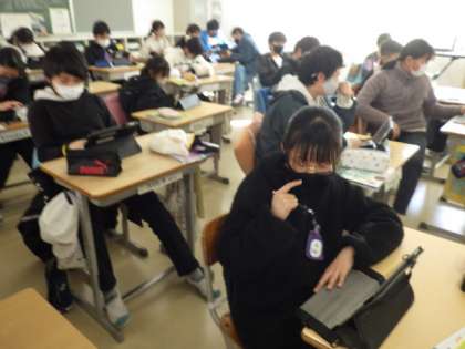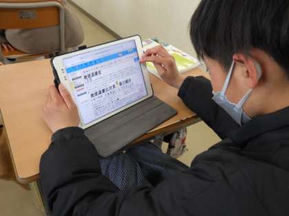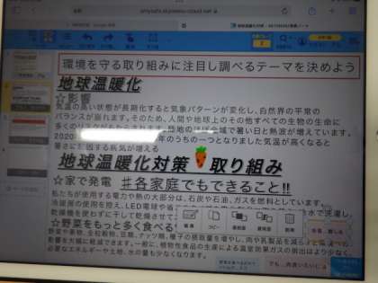 6年生の理科では、環境を守る取り組みについて学習しています。2/27の授業では、グループごとに環境を守る取り組みについて考え、それぞれの学習用タブレットを使って、まとめを作りました。