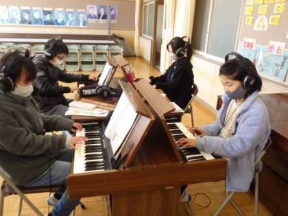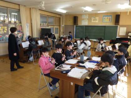 5年生の音楽では、「キリマンジャロ」の合奏に向けて練習しています。2/27の授業では、打楽器、リコーダー、オルガンと、楽器ごとに分かれてパート練習をしました。最後に合わせてみました。