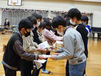 3/3に、6年生を送る会を行いました。今年も感染症対策のため、6年生が待っている体育館に、各学年が思いを伝えに行くスタイルでした。会場は、1〜5年生が作った飾り物であふれ、華やいでいました。