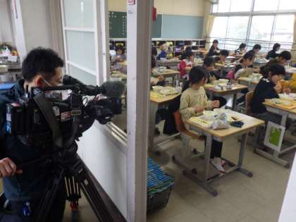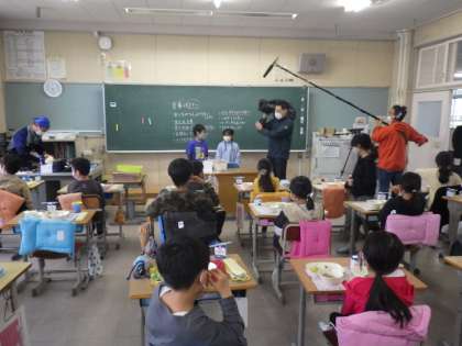 給食後、何人かの児童が、インタビューを受けました。「けじめのついた、素晴らしい生徒さんたちですね」と、取材班は感心していらっしゃいました。