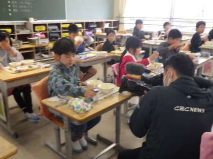 4/7(金)に、CBCニュース「チャント!」の取材班が来校し、4年生の学級活動の様子と給食の様子の取材がありました。