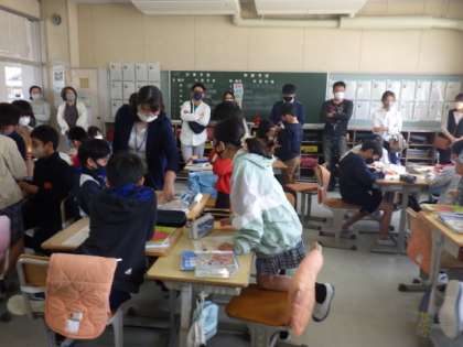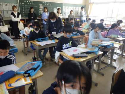4/14(金)に、授業参観をおこないました。たくさんの保護者のみなさんが、児童の学習の様子を参観されました。児童は、どのクラスでもいつもと同じように張り切り、グループで話し合ったり、考えて意見を発表したりしていました。