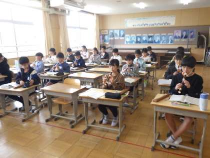 6年生の音楽では、「よろこびの歌」を学習しています。よろこびの歌を階名唱を行って音を覚え、続いてリコーダーで吹きました。タンギングを効かせて、歯切れのよい演奏となりました。