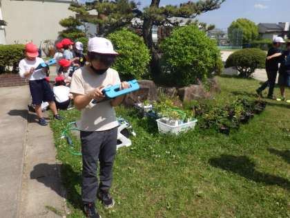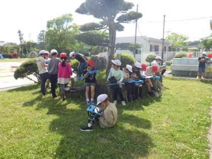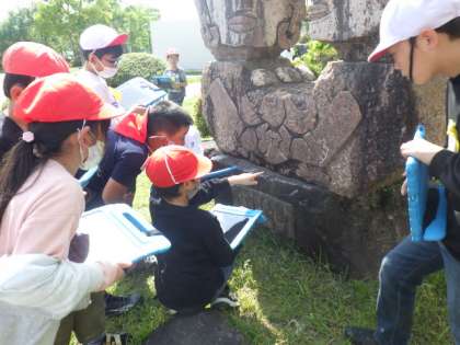 3年生の総合的な学習では、「生きものいっぱい、伊保のまち」というテーマで学習をしています。5/1の授業では、児童が校庭で生き物を探し、学習用タブレットで写真を撮ってまとめました。「先生、チョウのさなぎがあったよ!」と、教えてくれました。