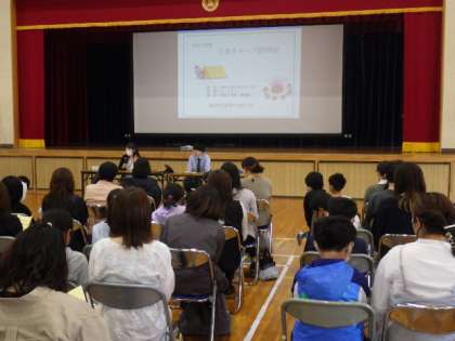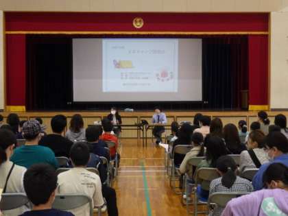 5年生は6/15〜6/16にキャンプ(野外学習)に出かけます。5/9に、保護者に来ていただき、キャンプ説明会を行いました。2日間の活動や持ち物についての説明を聞き、5年生は真剣な表情で聞いていました。