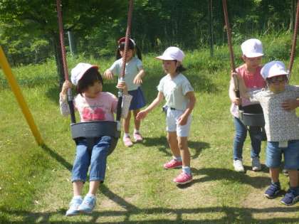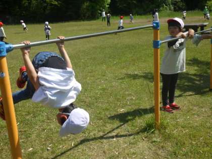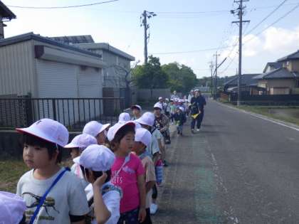 5/12(金)に、1年生は学区探検に出かけました。保護者や地域のボランティアの皆さんにもご協力をいただきながら、保見交流館となりにある公園に行きました。公園では、遊具を使ったり、追っかけあったりして、思い切り遊びました。