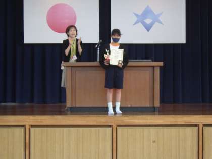続いて、水泳の大会ですばらしい成績を収めた児童の表彰伝達がありました。