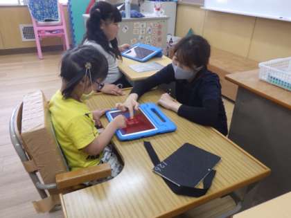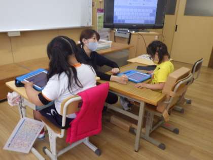 特別支援学級1・2年生は、学習用タブレットを使った学習も、積極的に行っています。5/16の授業では、授業で使うアプリを、自分でダウンロードしていました。