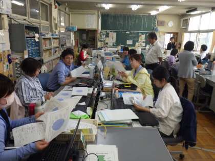 5/25(木)の児童下校後、教員で会議を開き、各学級のグラフを見ながら、それぞれの学級の持ち味について話し合いました。また、児童への効果的な声掛けや支援方法を考え合いました。全職員で、学級力を高められるよう、取り組んでいます。