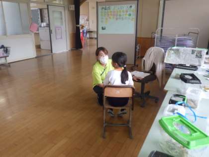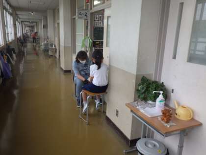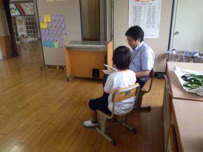 6月は6/5(月)〜6/9(金)の5日間行います。初日の6/5は、各クラスの廊下で、担任の先生と児童が、ゆったりとお話をしていました。児童は、リラックスした表情でした。
