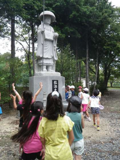 9月10日に,2年生が生活科の学習で,校外へ出かけました。目的は,地域の‘大好き’や‘○○名人’をみつけたり,地域の方々とあいさつや握手をして親しんだりすることでした。子どもたちは,元気いっぱいにあいさつをしたり,積極的に「何をしているんですか?」と声をかけたりしていました。畑で作業されていたおばあさんには,大きなとうがんや真っ赤なとうがらしを見せてもらいました。「握手してください!」と言って握手してもらった子もたくさんいました。とてもうれしそうな子どもたちの顔を見て,おばあさんも自然と笑顔になっていました。