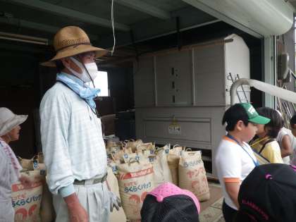 さらに,野菜作りでお世話になった,地域の方にも偶然お会いすることができました。そこで,収穫した米の乾燥作業の様子を見せてもらいました。校外学習に出かけ,あいさつを笑顔で返してくれたり,子どもたちに畑を見せてくれたり,話をしてくれたりする,あたたかい方々と出会うことができ,改めてこの地域のすばらしさを実感しました。