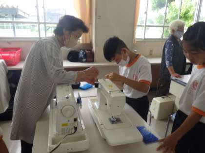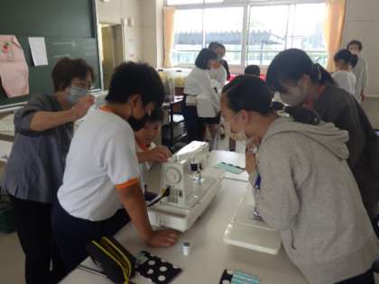 6年生の家庭科では、ミシンを使ってナップザックを作っています。6/9の授業では、ミシンを使ってボビンに糸を巻き付け、来週の授業の準備をしました。地域のボランティアさんと保護者ボランティアさんが、丁寧に教えてくださいました。来週はいよいよ、ミシンを使って縫い始めます。