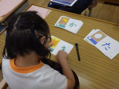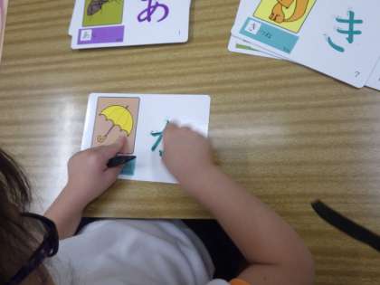 1年生特別支援学級の国語では、ひらがなを学習中です。6/12の授業では、「き」「か」「あ」などを、まず指でなぞり、その後ペンでなぞって、形を覚えました。毎日練習を積み重ねることで、滑らかな曲線がひけるようになりました。
