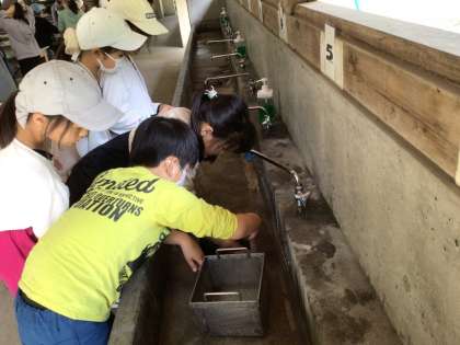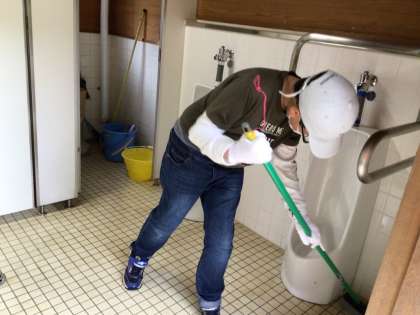 6/16(金)朝食後に、奉仕活動を行いました。自分たちの使ったところを、来た時よりも美しくなるように磨きました。