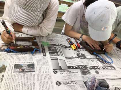 6/16(金)10:00から、クラフト「写真立て作り」を行いました。フレームに焼き色を入れて、世界でたった一つの写真立てを作りました。フレームには、マーカーで思い出を書き込みました。
