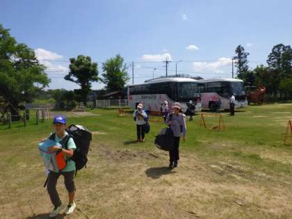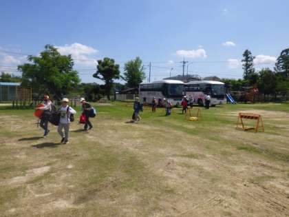 6/16(金)14:00頃、5年生が学校に到着しました。自分の荷物を持って、帰着式のために、素早く並びました。5年生の大きな成長を感じます。