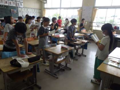 伊保小学校では、今年度から「朝の歌」を復活させ、全校で毎朝「今月の歌」を歌っています。6月の歌は、「少年時代」です。6/21(水)は、3年生が美しい高音で、歌っていました。さわやかな朝でした。