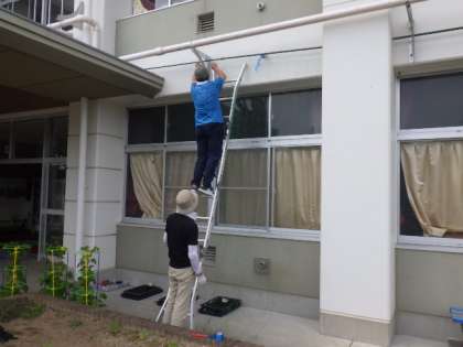 6/21(水)に、野菜名人さんがみどりのカーテン用のネットをつけてくださいました。校舎前の畑には、福祉・美化委員の児童が、ゴーヤの種を植えてあります。今後、ゴーヤが育ち、立派なみどりのカーテンができることでしょう。