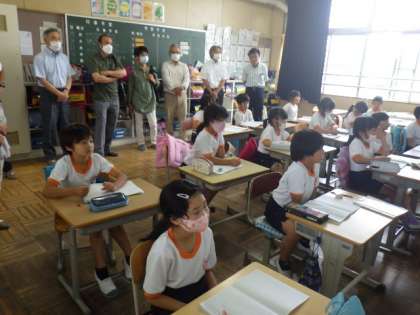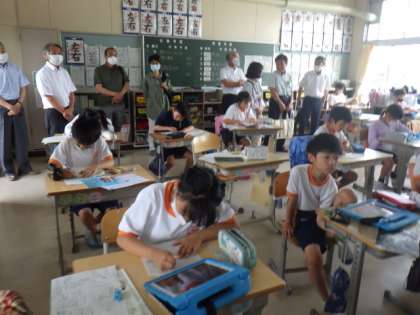参加された方々は、全クラスの授業参観をした後に会議を行い、学校運営協議会では、伊保小学校の教育目標や、地域学校共働本部の今年度の活動計画について、協議しました。参加された方々からは、「子どもがとても前向きに学習している」「表情がいいね」など、お褒めの言葉をいただきました。