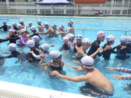 6/29は、プールで6年生と1年生が水遊びをしました。低学年プールで、1年生をたらいに乗せて6年生が運んだり、じゃんけん列車をして楽しみました。