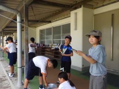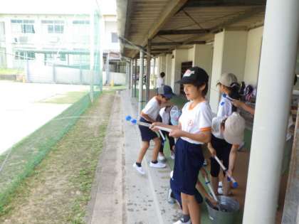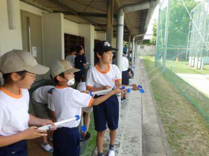 4年生の理科では、水や空気のちからについて学習しています。7/4の授業では、水鉄砲に水を入れて圧縮し、水を遠くまで飛ばして、その力を確かめていました。