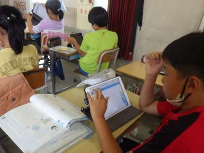 7/4は、学習用タブレットを使って、表紙を作り、「ユニバーサルデザインとは何か」の説明を、学習用タブレット「発表ノート」を使って書き始めました。