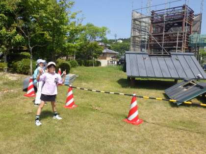 7/28は、児童が今まで慣れ親しんだふれあいの塔に、お別れを言いに来てくれました。