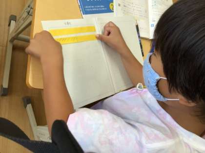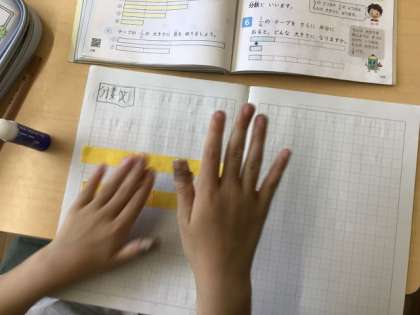 特別支援学級3年生の算数では、分数を学習しています。9/1の学習では、半分を「2分の1」と呼ぶことを学習しました。